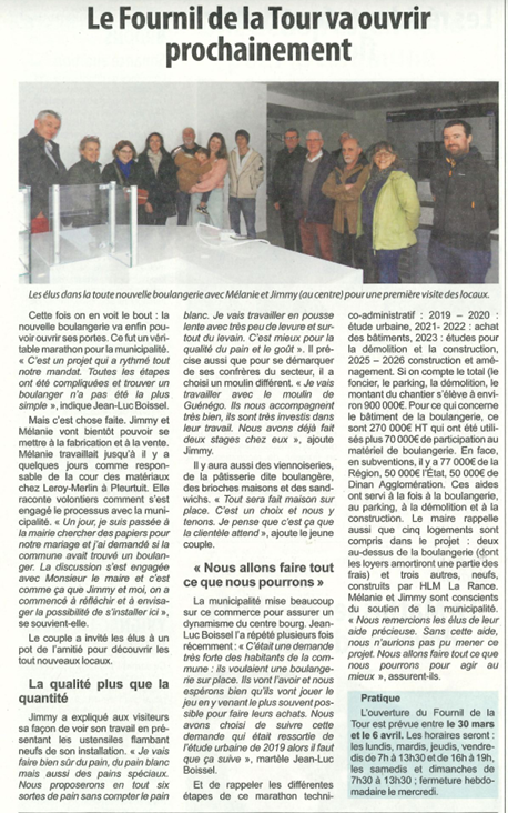 Le Fournil de la Tour va ouvrir prochainement.