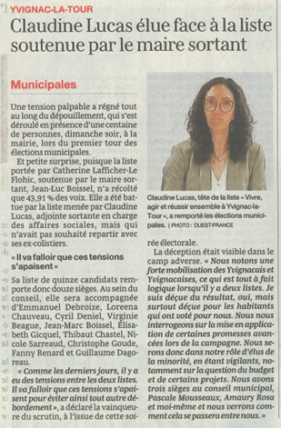 Claudine Lucas élue face à la liste soutenue par le maire sortant.