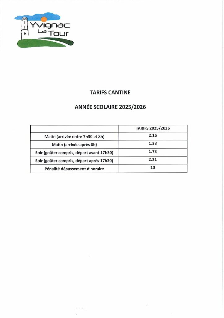 Le repas est facturé 3.26 € (année 2025/2026).